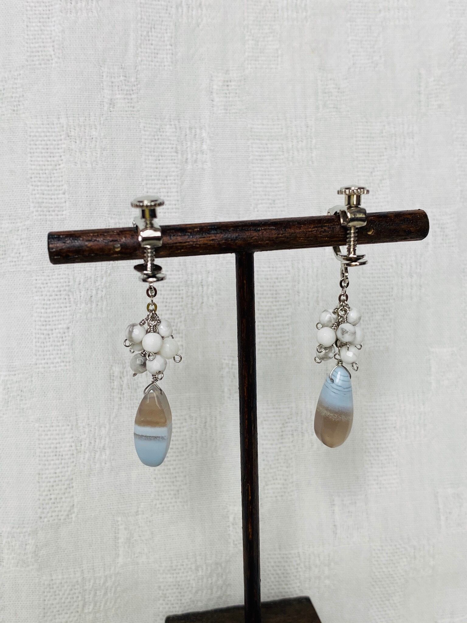 ブルーストライプオパールとハウライトのサージカルステンレスイヤリング