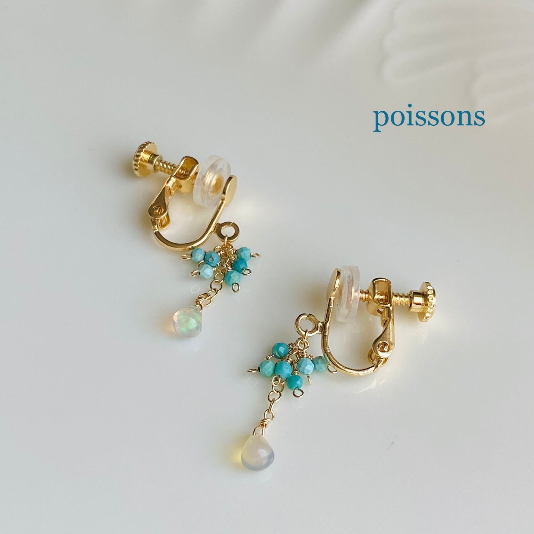 ラウンドカットのターコイズはブルーグリーンの濃淡を混ぜて。