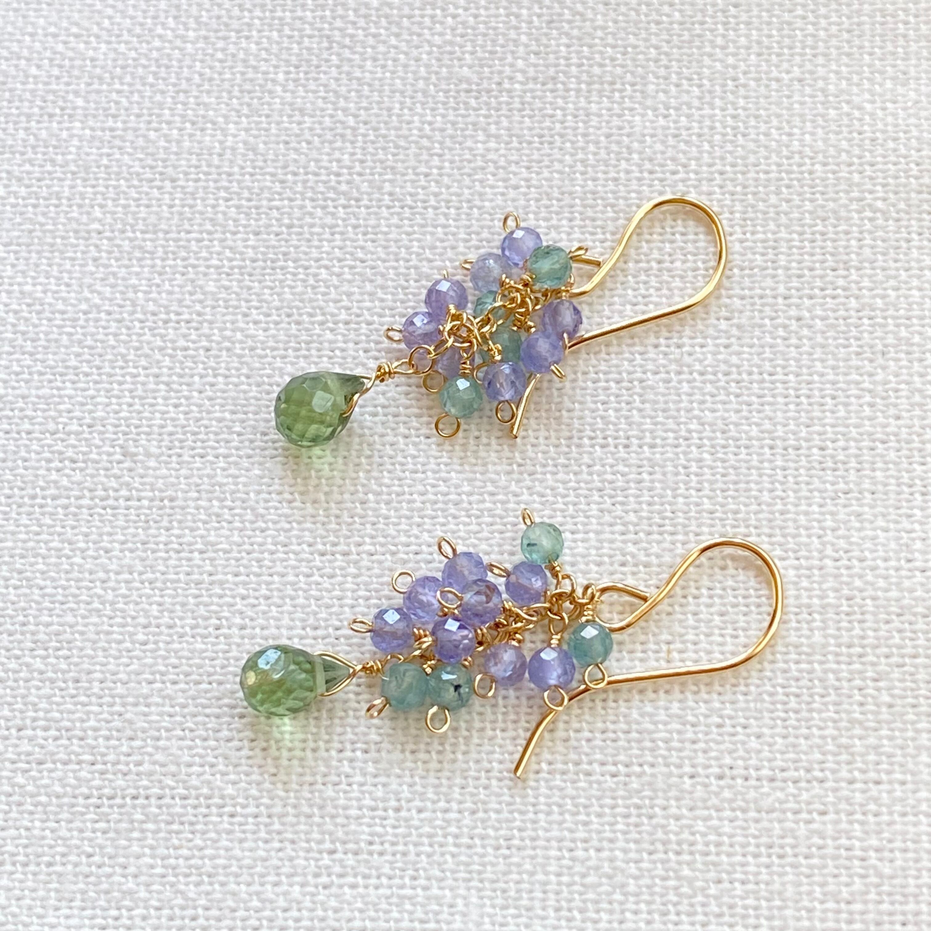 アパタイト、タンザナイトとトルマリンの14kgfピアス
